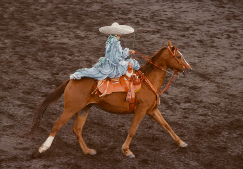 La charrería también es un deporte para mujeres. En una charreada siempre se incluyen las escaramuzas, esto es, evoluciones coreográficas, a galope o a trote, ejecutadas por mujeres que montan “a mujeriegas”, es decir, al estilo amazona, ataviadas con el traje de Adelita o de ranchera mexicana.